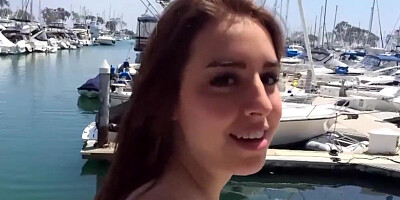 Cute teen with huge tits ass & glasses goes for an outdoor creampie riding
